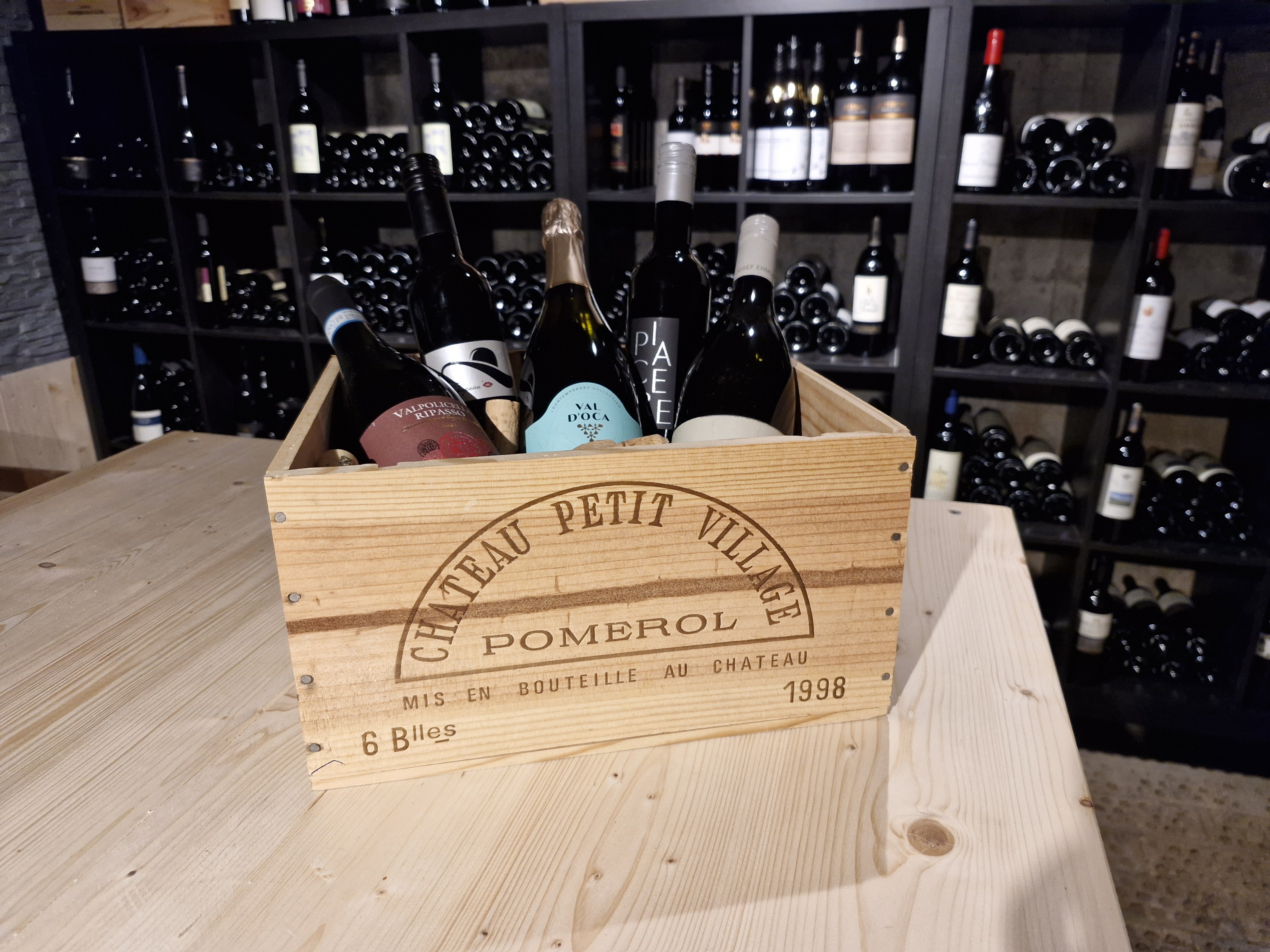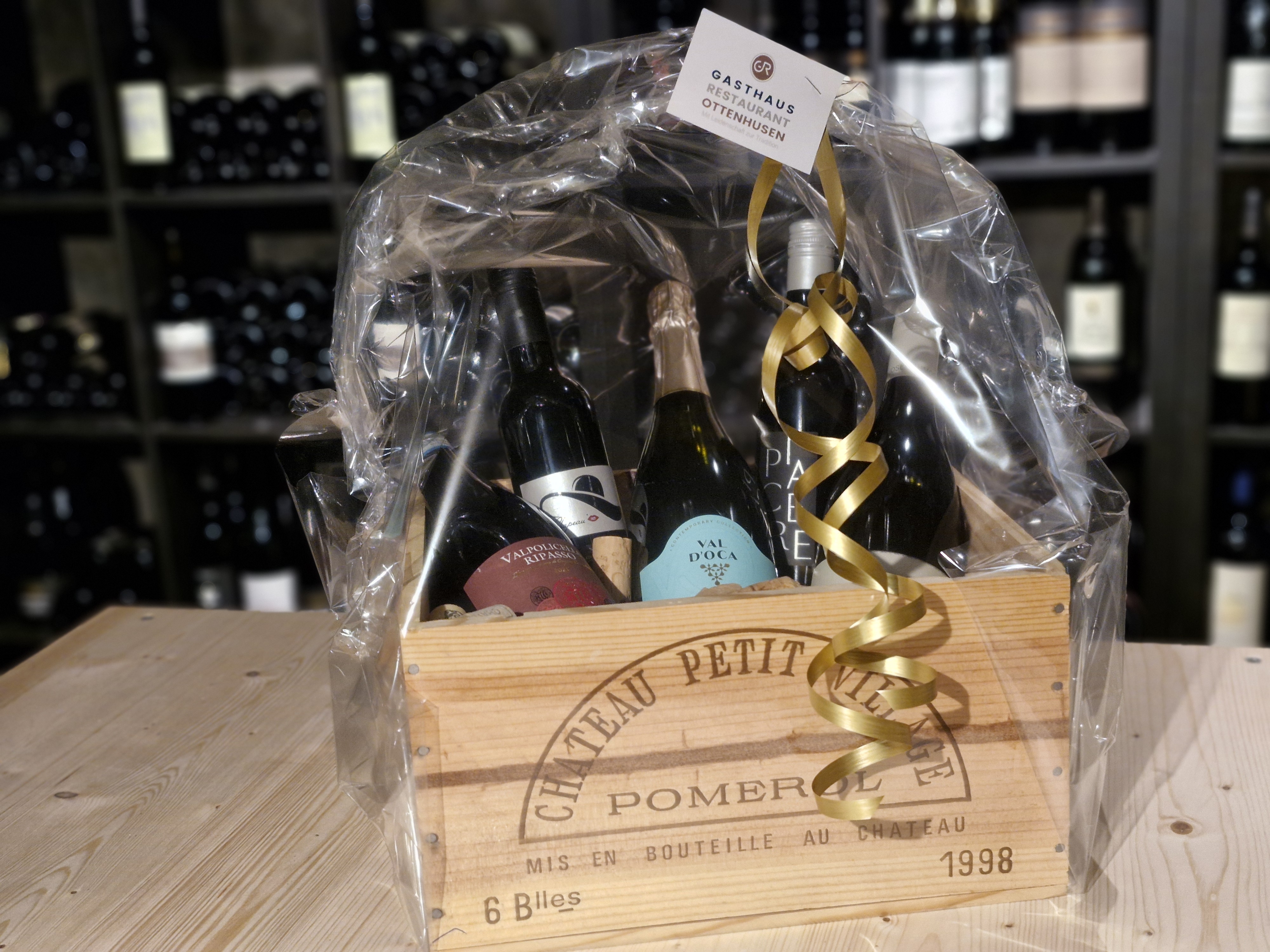Diversité - Das Vielfältige. 5 Flaschen gemischt (rot, weiss & Prosecco) in einem Original Bordeauxholzkistli. CHF 65.00
