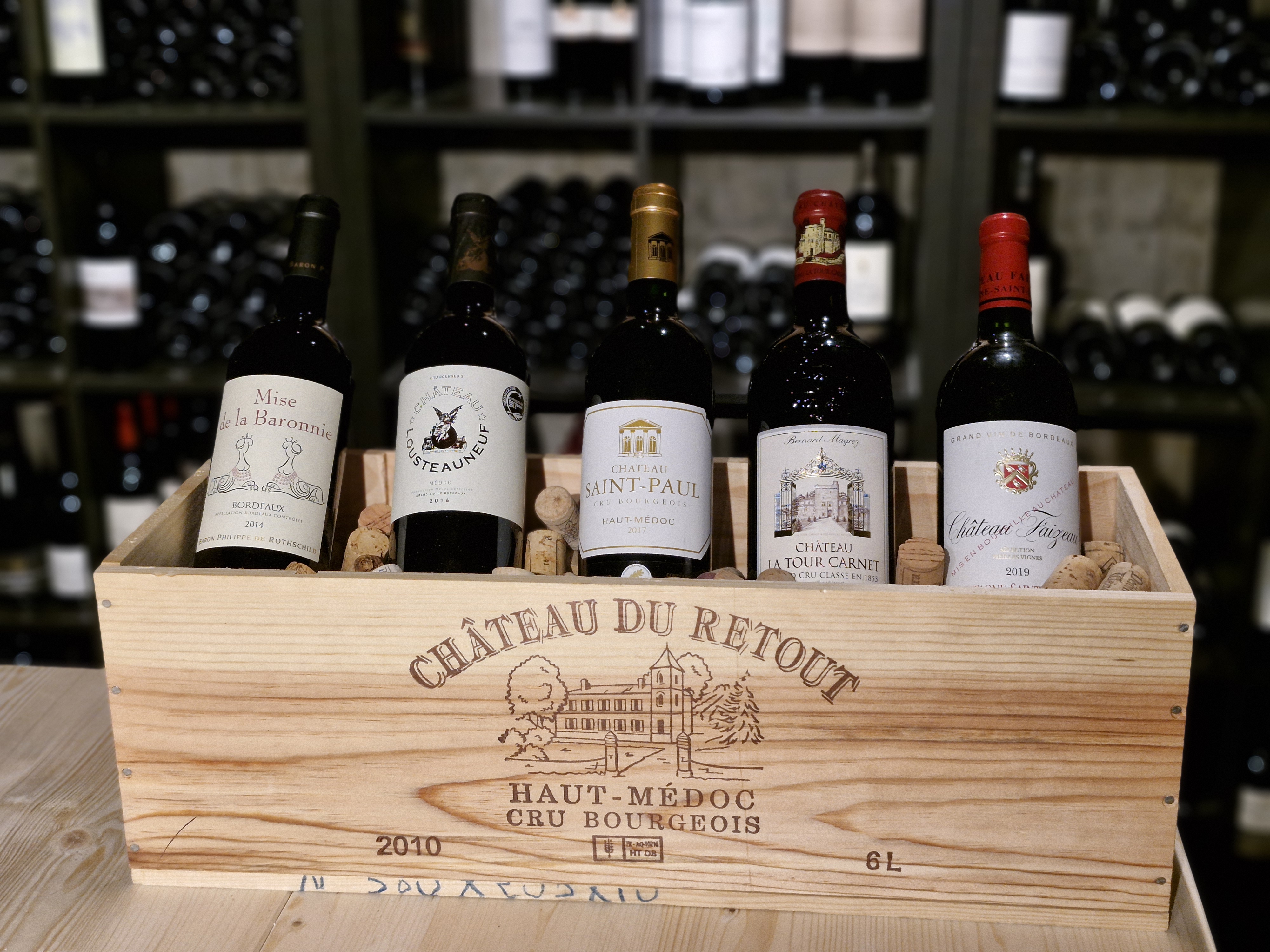 Les Bordeaux - Für den WEIN-Liebhaber und besondere Anlässe. 5 x 75cl Flaschen gereiften Bordeaux aus verschiedenen Jahrgängen (ab 2014 aufwärts) in einer Original Bordeauxholzkiste. CHF 180.00